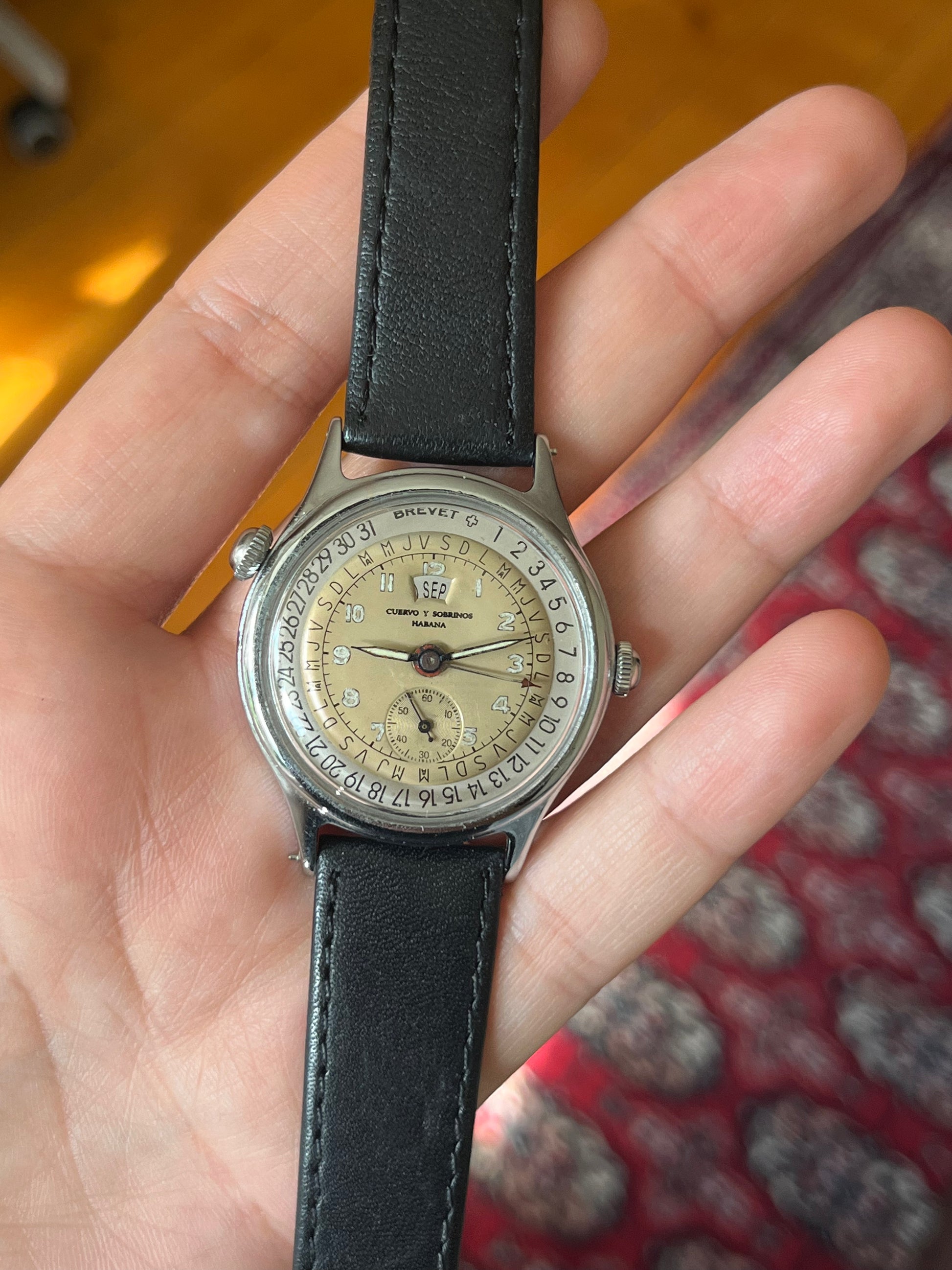 Love the look of this watch with its perfectly beige-colored dial. It has aged but nicely so.